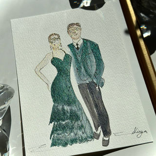 I will try to capture as many guest as possible, but this is meant to be a special and one-of-a kind experience so some guest might not be able to receive a painting. If you would like every guest painted, I can finish them at home and mail it to the couple or organizer. (I can also mail them directly at $5 extra. per illustration).