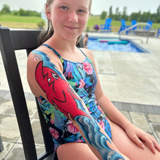 At one swim meet my son had Ironman's chest painted on him, when he took his shirt off the little kids just gasped and stared... it is still my best memory ever for waterproof face paints.